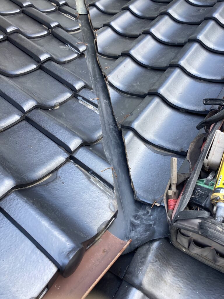 大村市の諏訪町で銅の谷板金が劣化していたため、ステンレスの谷板金に交換工事を行いました! 施工の様子をお届けいたします。